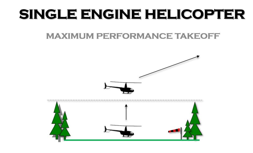 When obstacles such as buildings, trees or power lines, in front of the helicopter prevent you from accelerating, before climbing, a maximum performance take off is required.