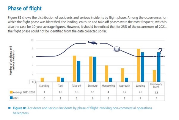 Unfortunately, analysis from the EASA helicopter safety team puts the proportion of accidents during take-off as 17%, and including approach and landing, this rises to 45%. Over a 10-year period, EASA assessed just under 9 take-off accidents per year from ‘non-commercial’ helicopter operators.