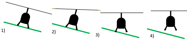 - Allow the down-slope skid to lift – hold level hover attitude.