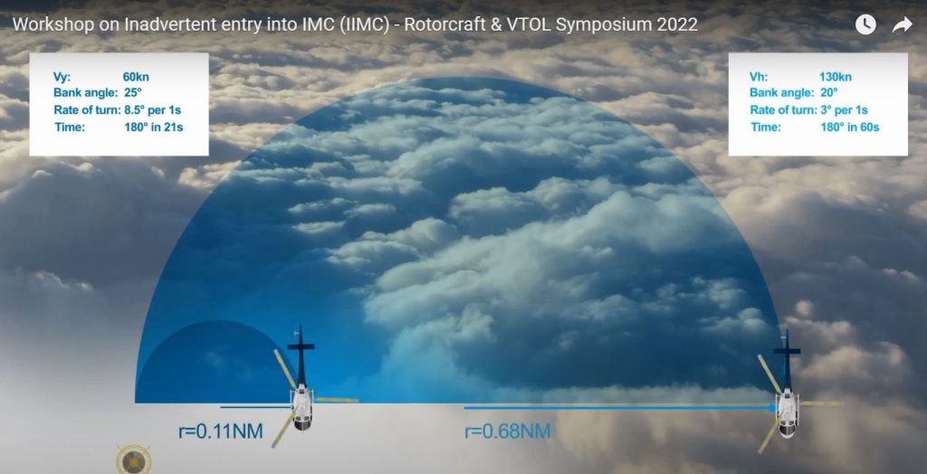 This ‘workshop’ from the EASA Rotorcraft 2022 Conference on IIMC makes for an interesting watch (if you have 49 minutes spare), as Tim Fauchon (CEO of BHA and former RAF SAR Pilot) provides an account of his experience going IIMC, and the rather unorthodox recovery that he and his co pilot undertook to get the Sea King helicopter safely on the ground. They did this by performing a full quick stop on instruments before conducting a 180 degree pedal turn in the hover and exiting the valley the way they had just come from, before landing the helicopter with visual references. He, and other panellists highlighted the risk of getting ‘the leans’ if a 180 turn is conducted immediately on entering cloud, without first taking a moment to become settled on reading the instruments.